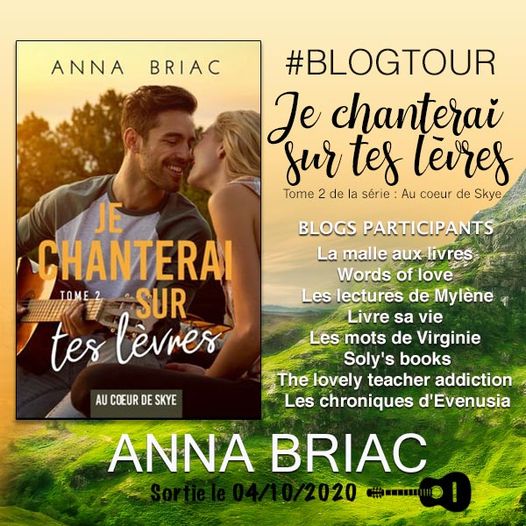 Retrouvez-nous avec les blopines pour le blog tour consacré au nouveau roman d'Anna Briac "Je chanterai sur tes lèvres" qui est le tome 2 de la série "Au coeur de Skye" et évidemment, c'est une tuerie. Il est sorti le 4 octobre.